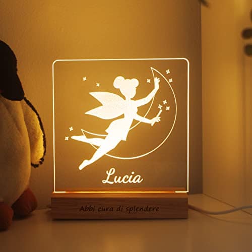 • [ Lampada Personalizzata Bambina ] Per creare la lampada notturna inserisci il nome della bambina o del bambino e il testo da incidere sulla base. NB: No caratteri speciali, emojy, font esterni.