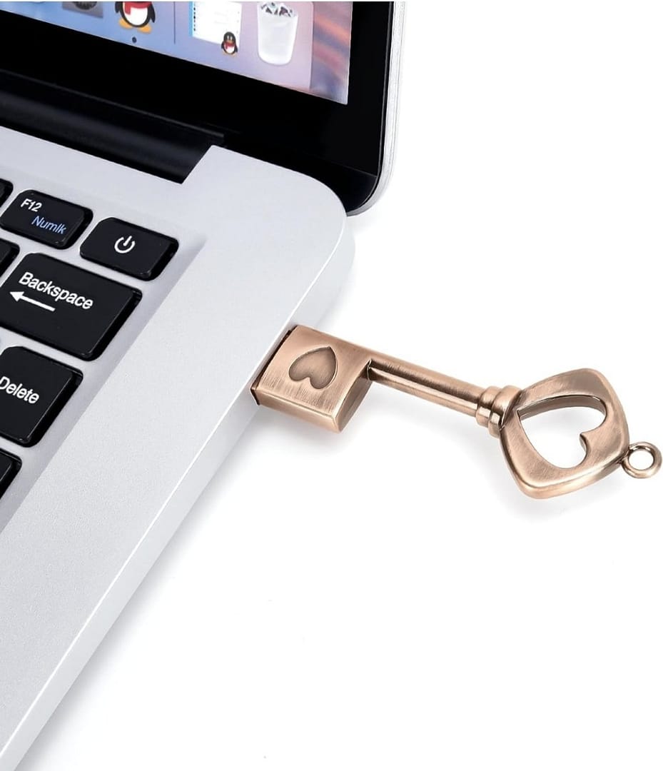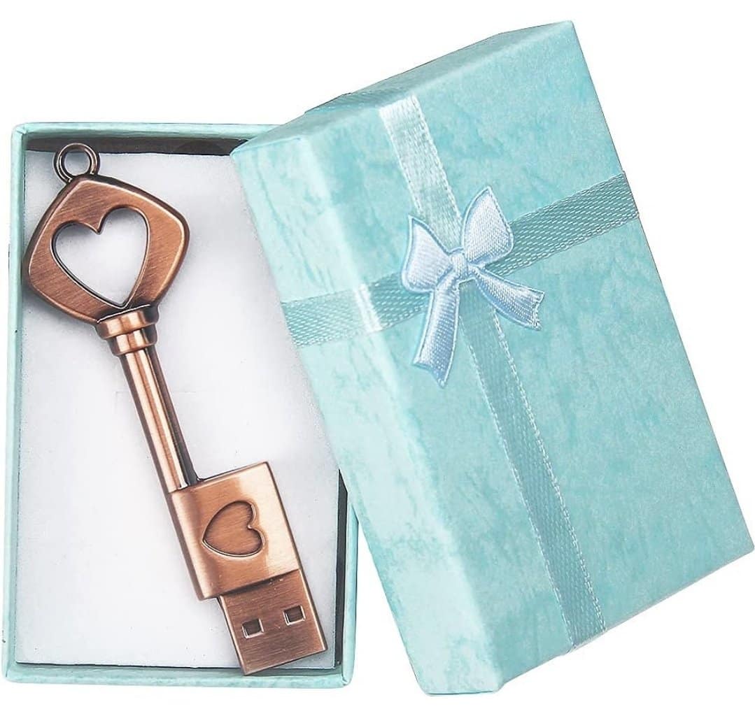 Questa chiavetta USB da 64GB a forma di chiave vintage con cuore è un’idea regalo perfetta per amici, familiari o per occasioni speciali come matrimoni. Realizzata in metallo resistente, ha un design elegante e romantico che la rende non solo un pratico dispositivo di archiviazione, ma anche un accessorio affascinante.
